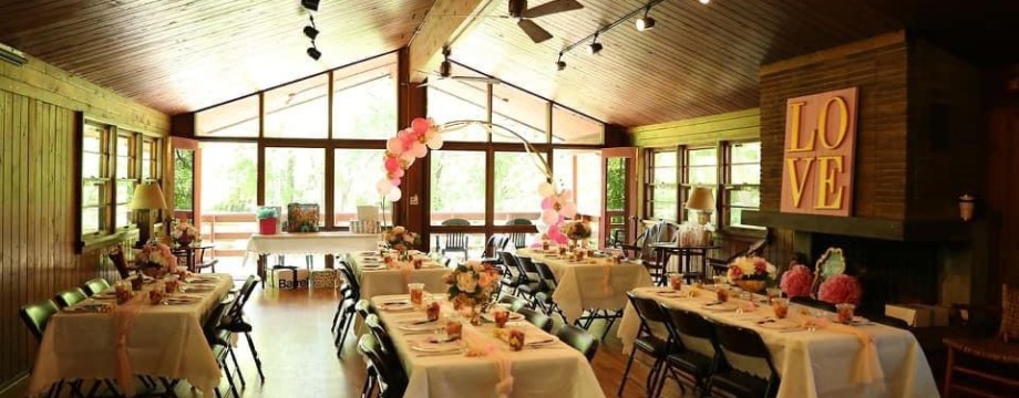 Jernegan Lodge: $300 per day. There are ten 6-foot tables and one 8-foot table along with 60 black padded folding chairs included with Jernegan Lodge rentals.